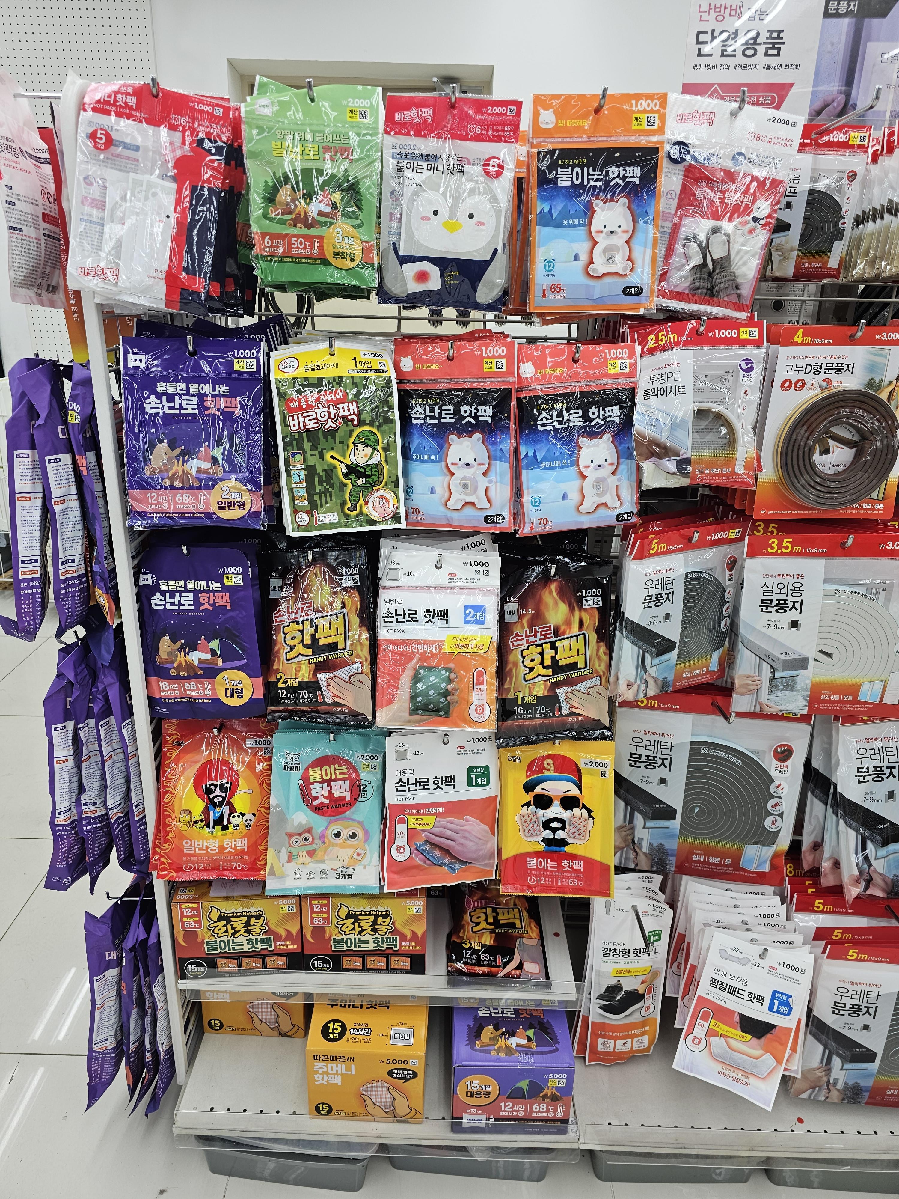 다이소 손난로 핫팩 1000원에 2개짜리 모음.. 저희 동네엔 3가지 있네요.