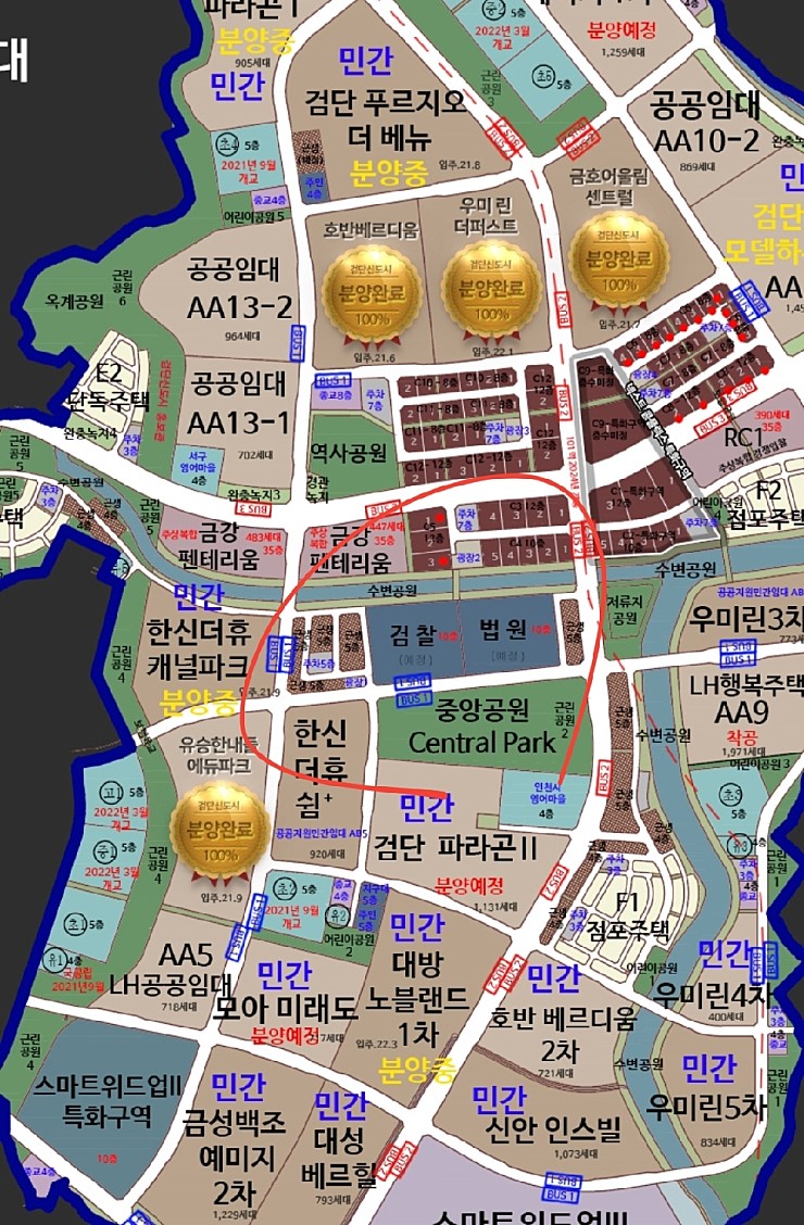 위 그림에서 GOLDEN BLOCK 라고 써진 부분이.. 풍무동입니다.
