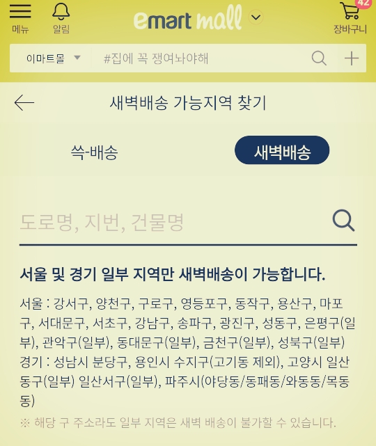 ※ 해당 구 주소라도 일부 지역은 새벽 배송이 불가할 수 있습니다