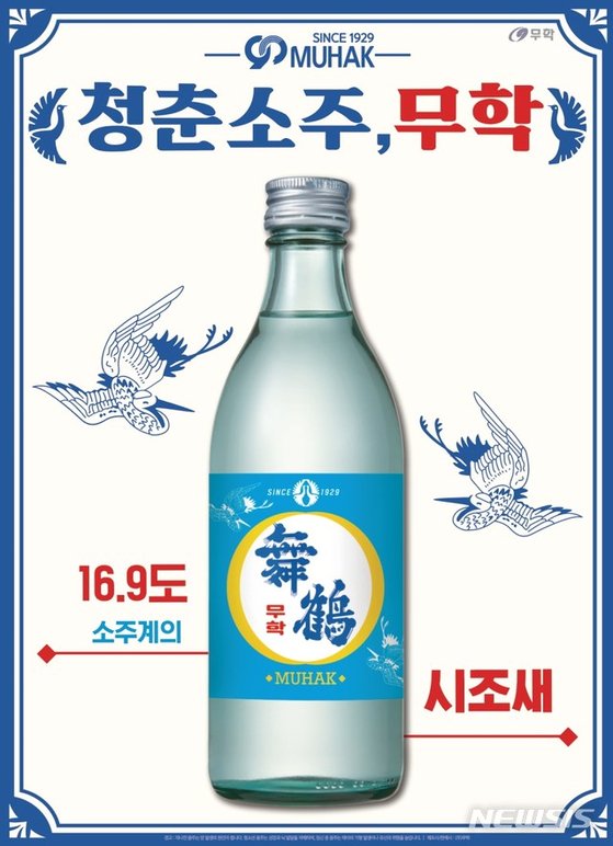 경남 창원에 본사가 있는 무학도 지난 10월 뉴트로 버전인 ‘청춘소주, 舞鶴(무학)’을 출시하며 뉴트로 소주병 경쟁에 뛰어들었다. 소주병에 1970~1980년대 디자인으로 사명 무학이 한자로 크게 표현된 것이 가장 눈에 띄는 특징이다. 또 진로이즈백과 마찬가지로 소주병을 기존 녹색병에서 하늘색 병으로 바꿔 확실한 차별화도 시도했다.