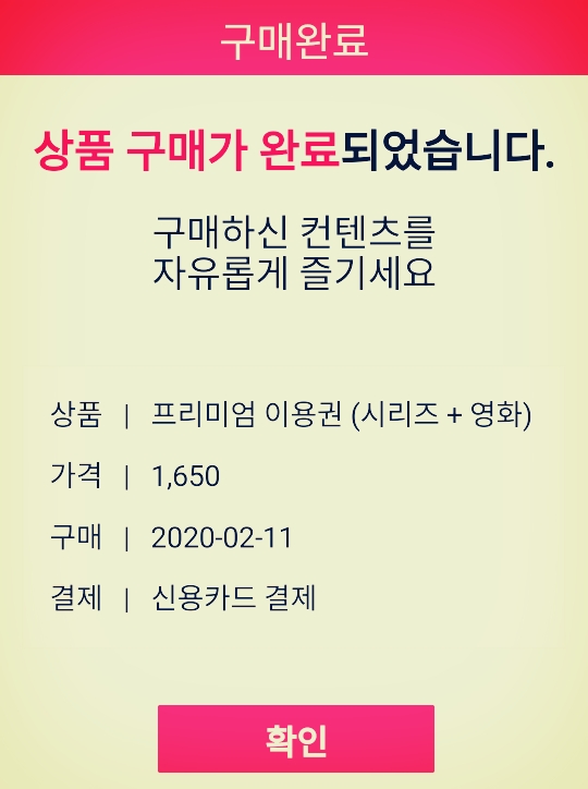 가. 단품 : 유료 서비스를 하나씩 구매하는 방법으로 결제된 서비스는 2일(48시간) 동안 이용이 가능합니다.
