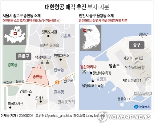 그룹의 '아픈 손가락'인 서울 종로구 송현동 부지의 경우 대한항공이 2008년 경복궁 옆 부지 3만6천642㎡(옛 주한미국대사관 직원숙소)를 삼성생명으로부터 2천900억원에 사들여 호텔을 포함한 복합문화단지 신축을 추진한 곳이다.