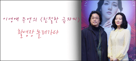 드라마 <대장금> 이후 제2의 전성기를 맞은 이영애가 주연을 맡고 <올드보이>로 세계를 놀라게 한 박찬욱 감독이 연출을 맡아 화제가 된 <친절한 금자씨>가 지난 3월 31일 경기도 파주 스튜디오에서 처음으로 현장을 공개했다. ‘오나라~ 오나라~’ 열풍을 부른 이영애가 박찬욱 감독의 마지막 복수극을 선택한 것이 궁금증 도화선에 불을 댕겼기 때문일까? 이날 촬영현장에는 80여 명의 내신 기자들을 비롯, 일본과 홍콩에서 온 110여명이 넘는 외신기자들이 참석해 열띤 취재경쟁을 벌였다. 특히 110명에 달하는 외신 기자 중 현재 <대장금> 열기가 뜨거운 홍콩의 언론 40여명은 영화사의 공식적인 초청이 없었음에도 불구하고 자비를 들여 현장을 방문하는 열의를 보였다.
