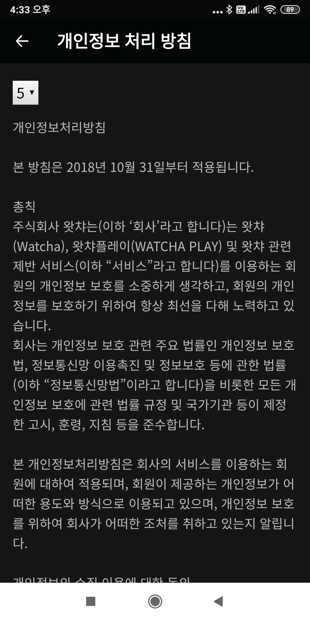 왓챠 플레이 개인정보처리방침 본 방침은 2018년 10월 31일부터 적용됩니다