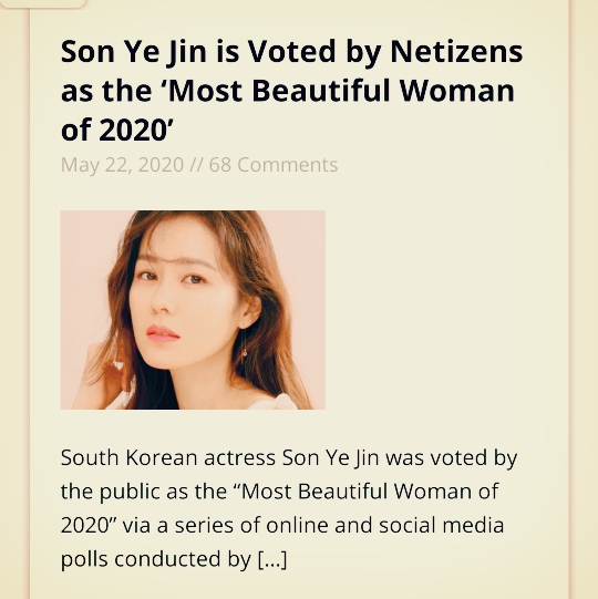 May 22, 2020 // 56 Comments After a global vote of 13,955,584 via online poll and social media, netizens named South Korean actress Son Ye-Jin as the Most Beautiful Woman of 2020. We started the search [...] May 22, 2020 // 68 Comments South Korean actress