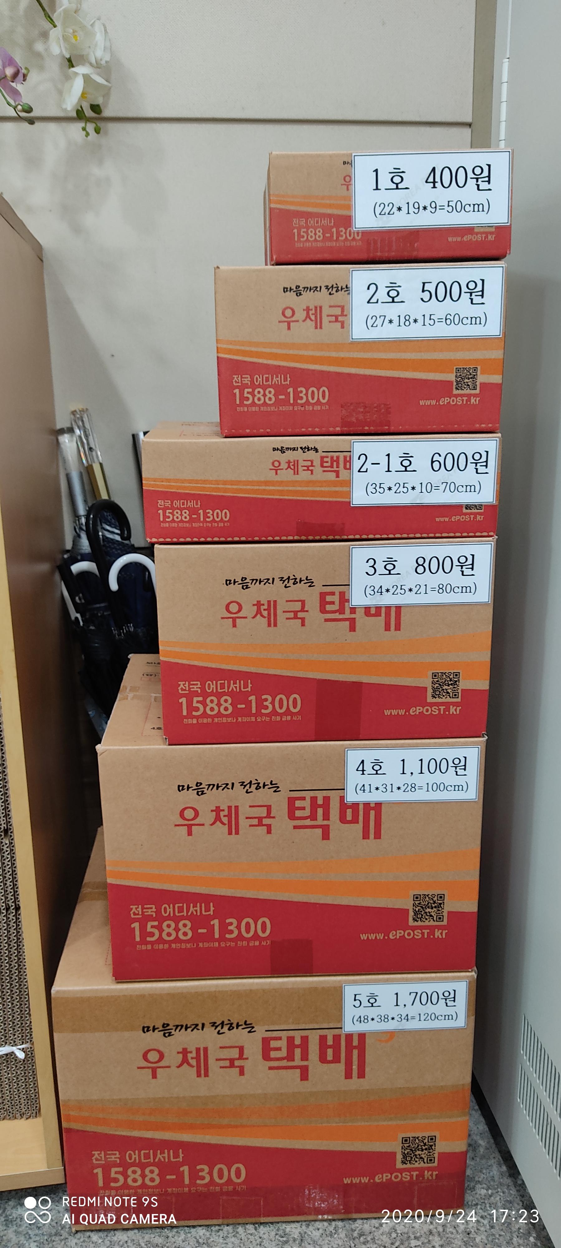 우체국에서 파는 택배박스 가격 & 사이즈 2020.09.24일자