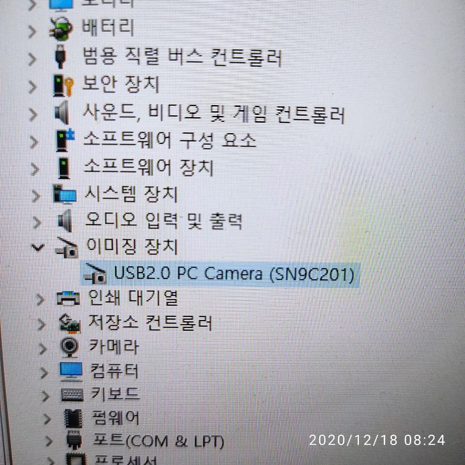 설치하고 보니.. 장치관리자에.. USB 2.0 PC Camera (SN9C201) 이라고 뜨네요..