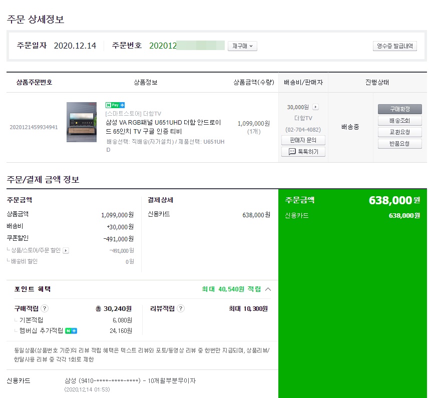 네이버페이로 구입했기에.. 구입후기에..(유상수리로 판명이 났으니)