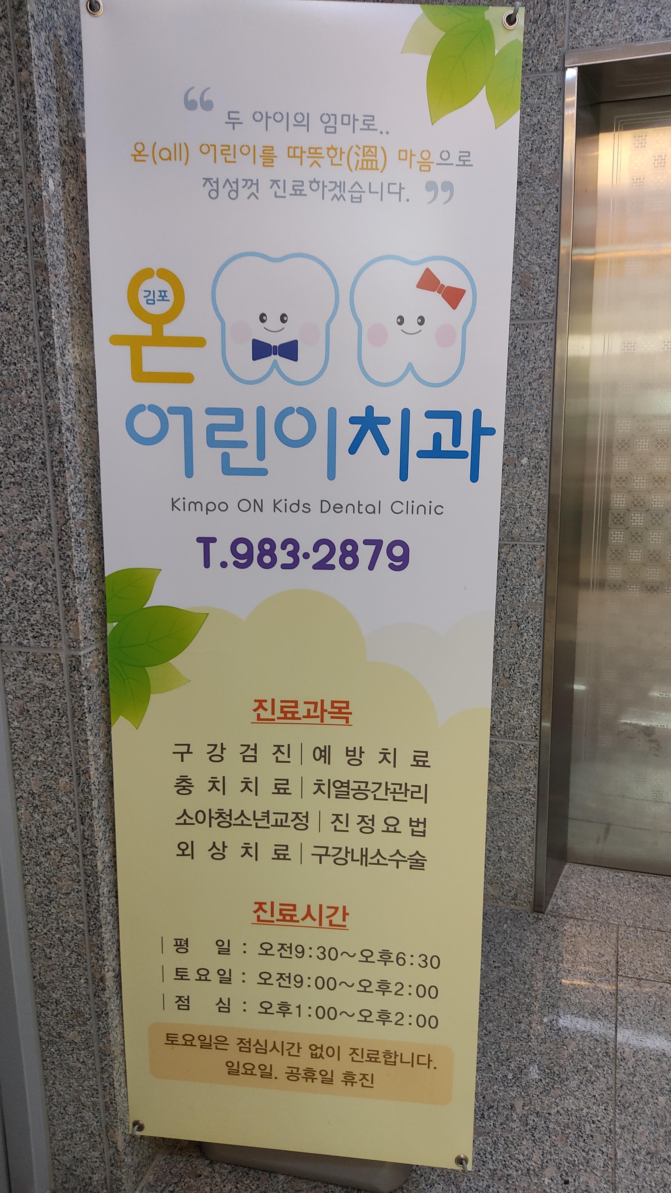 김포 온 어린이 치과 보험 청구 진료과목 진료시간 치료실 풍경