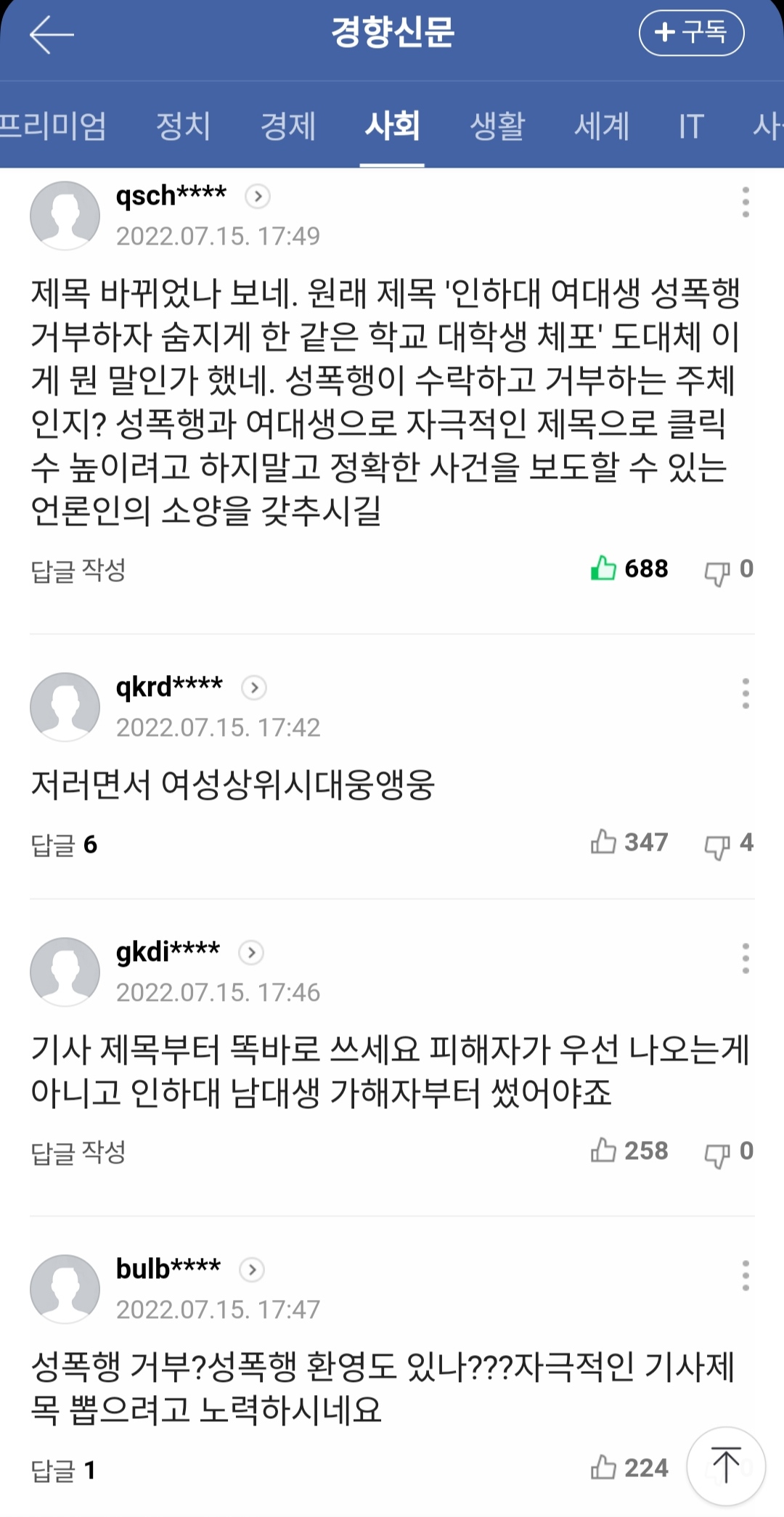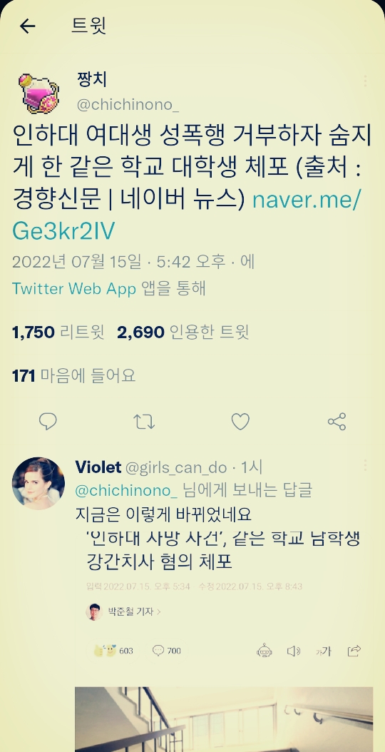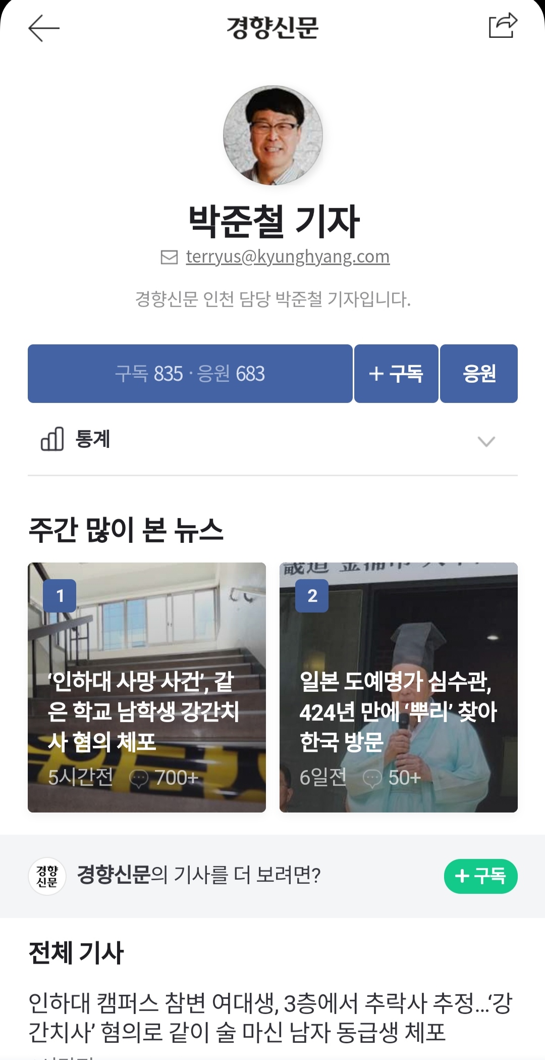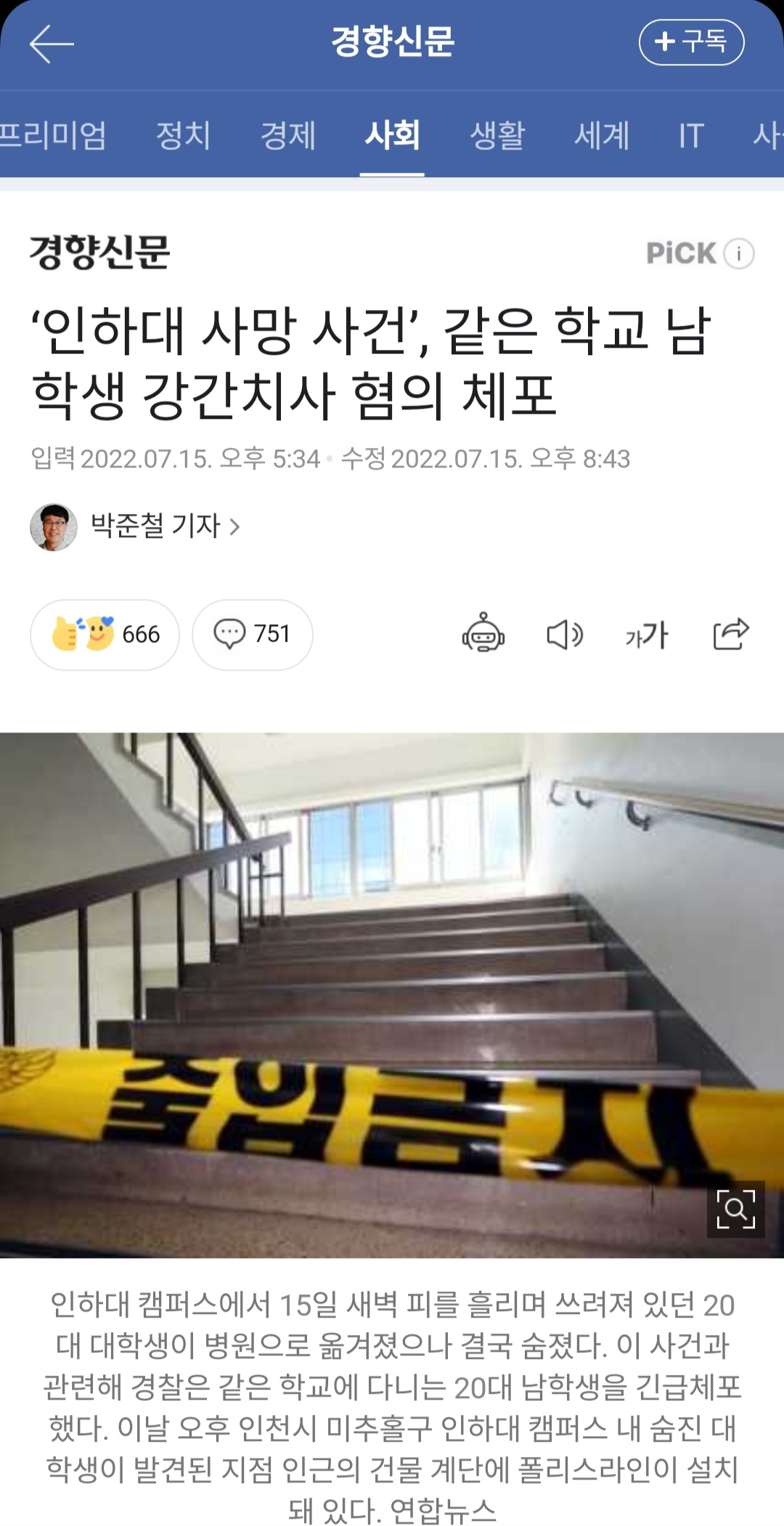 경향신문 박준철기자 인하대 남학생 살인사건 기사 제목을 기가 막히게 뽑았네요