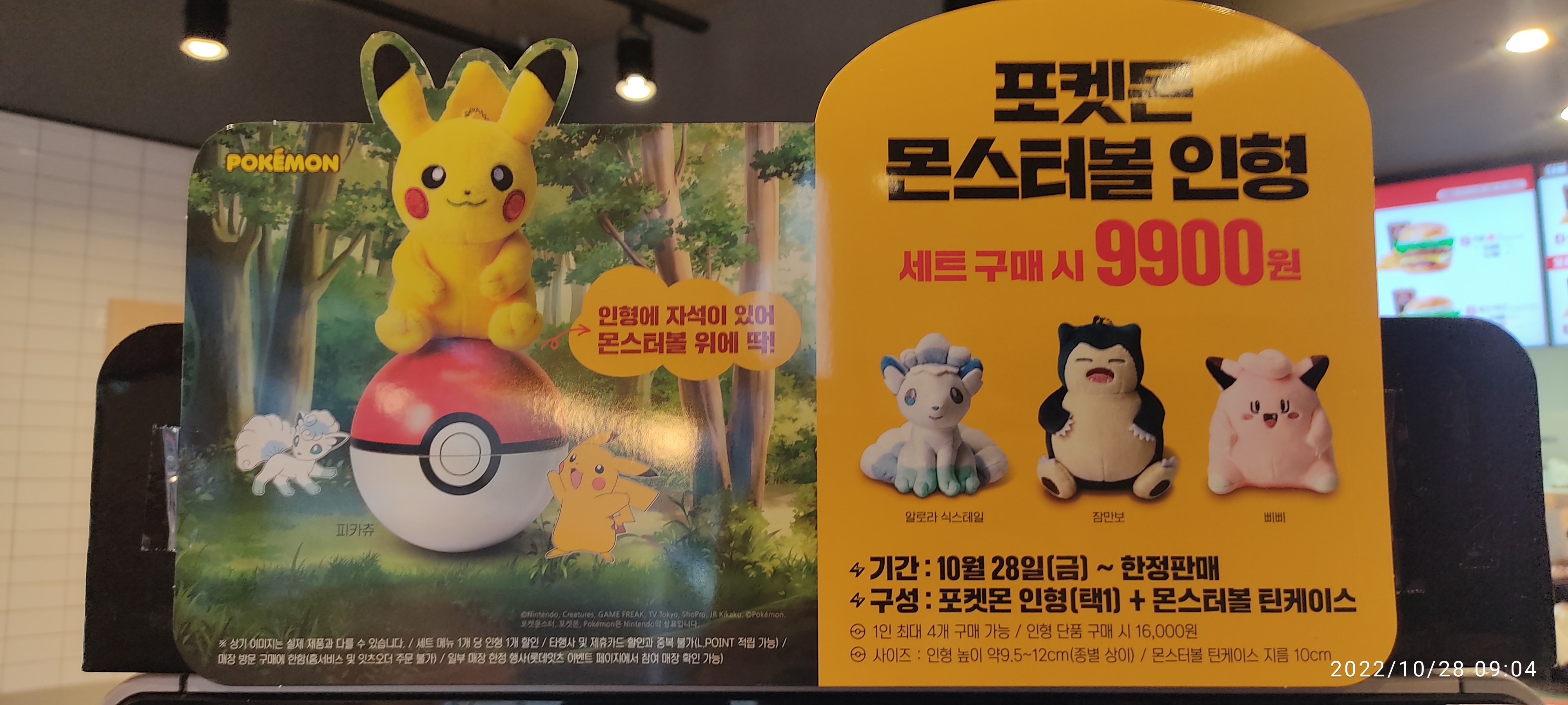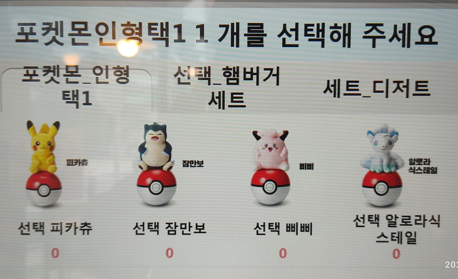 롯데리아 X 포켓몬 인형 4종류 랜덤 아니고 선택 가능. 인증샷 첨부