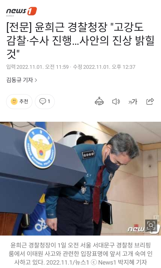 다음은 경찰청장 윤희근 입장문 전문 2022.11.01 #이태원