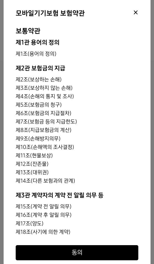 다.보험의 목적: 이 약관에 따라 보험에 가입한 물건으로서 보험증권에 기재된 모바일기기(이하 “피보험제품” 이라 합니다)를 말하며, 계약자와 포괄계약을 맺고 포괄계약기간에 회사가 정한 양식과 절차에 따라 회사에 통보함으로서 보험의 목적이 됩니다.