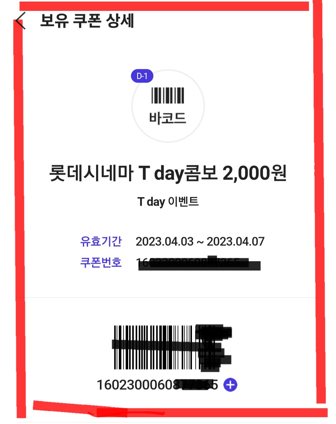 쿠폰 사용 방법: 롯데시네마 영화관 매점에서 쿠폰 바코드를 보여 주시거나 스마트 키오스크에서 사용 후 2,000원 결제