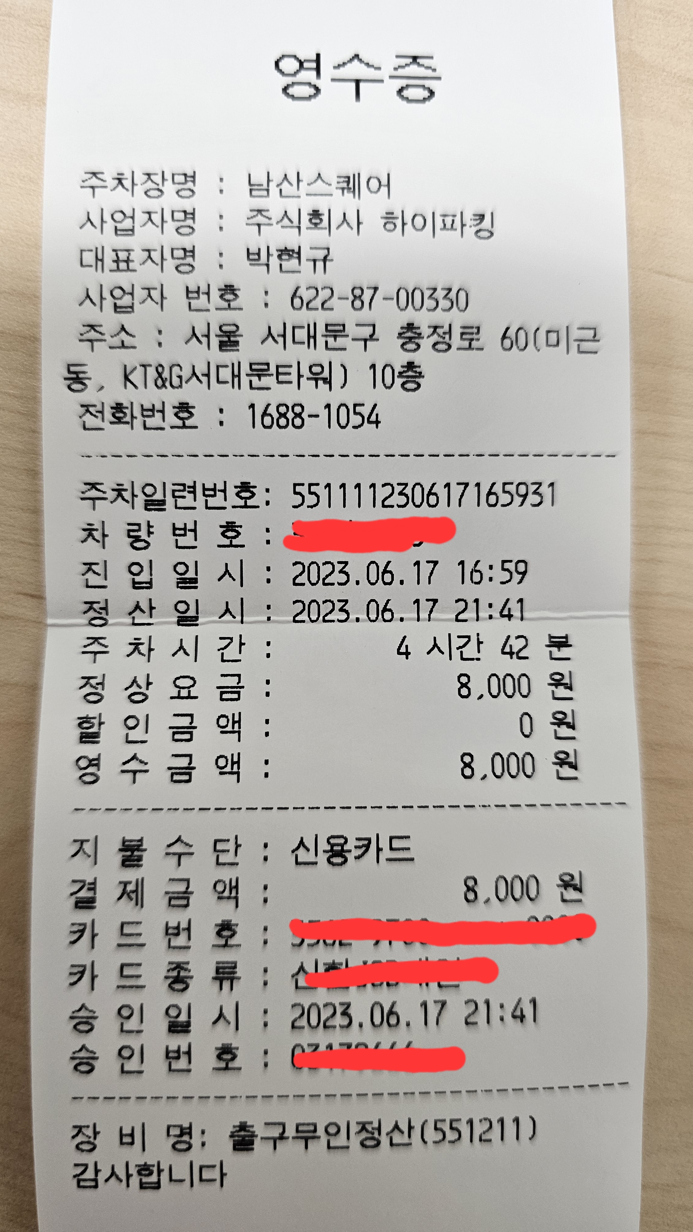 주차 영수증..