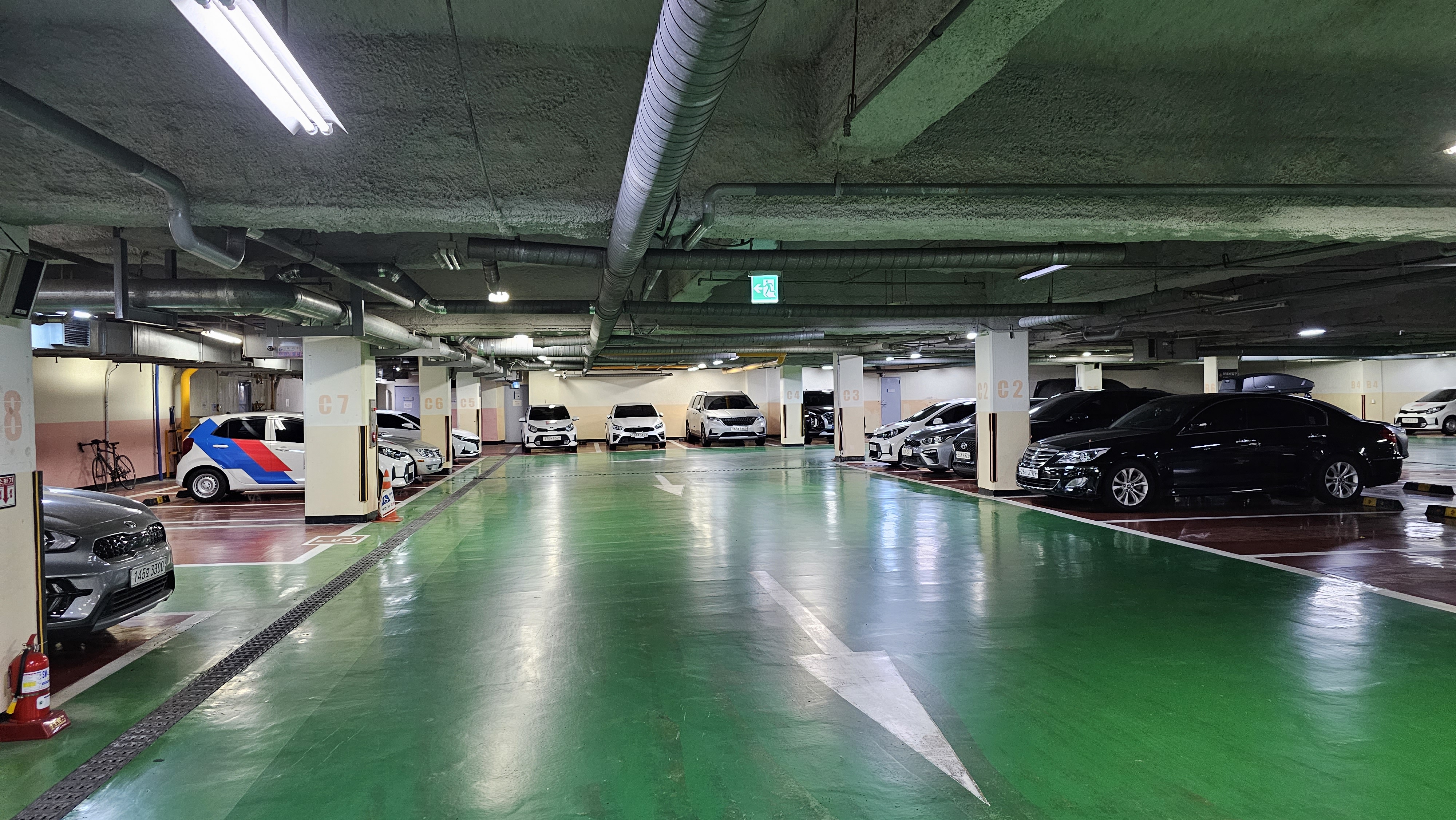 지하 1층 주차장 상황. 비싸서 그런지 차들이 별로
