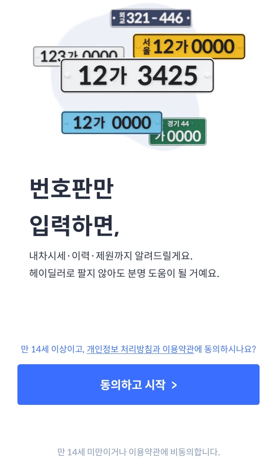 헤이딜러 광고만 보다가 혹시하고 깔아보니 번호 외에도 알아야 하는게 있군요..회원가입은 필요없네요
