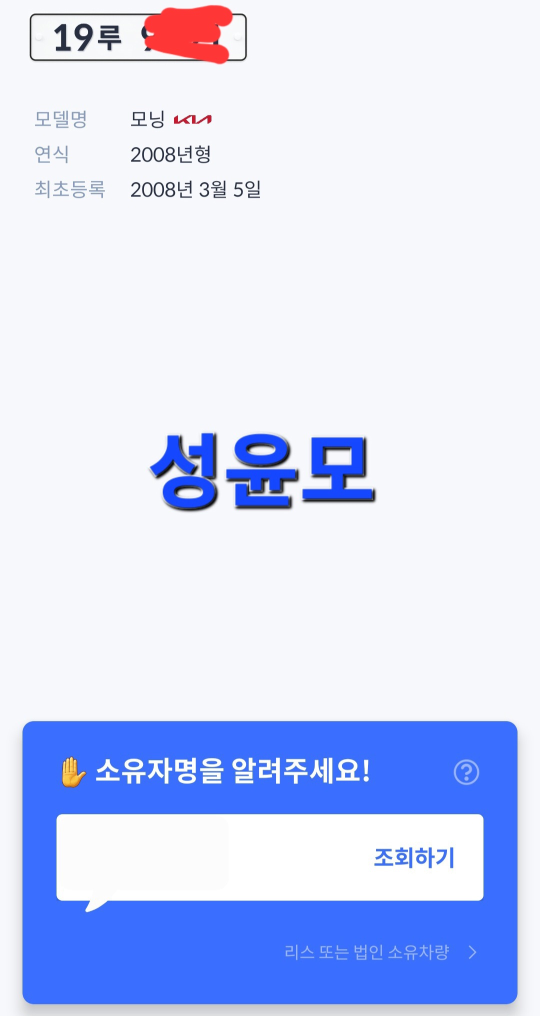 차 번호 넣고 나니.. 소유자명을 알려달라네요