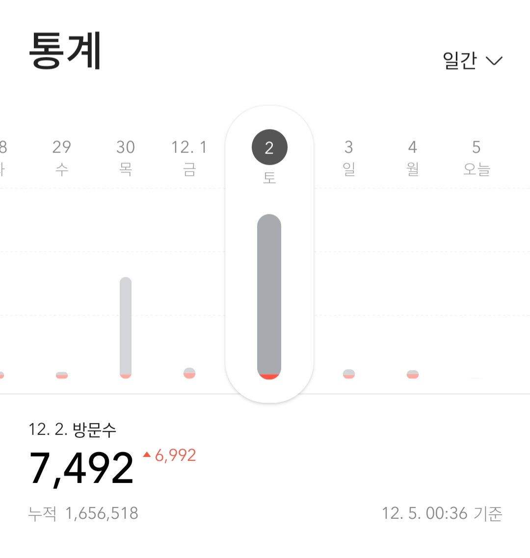그러다가 12월 2일 방문자수가 7492명이 나옴