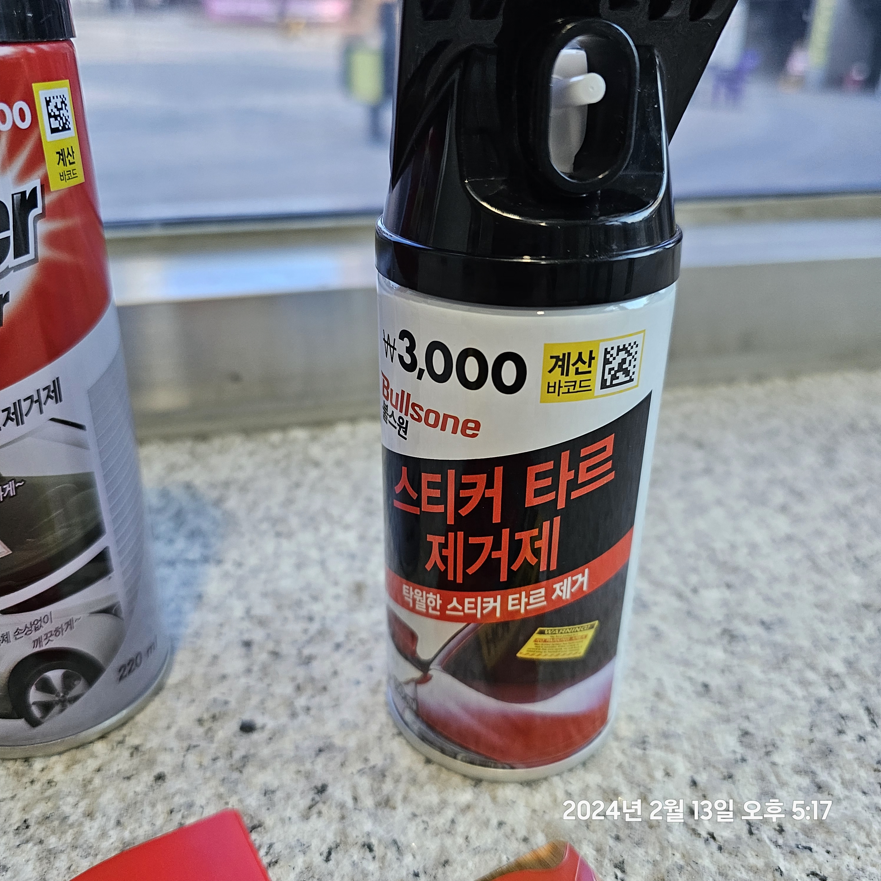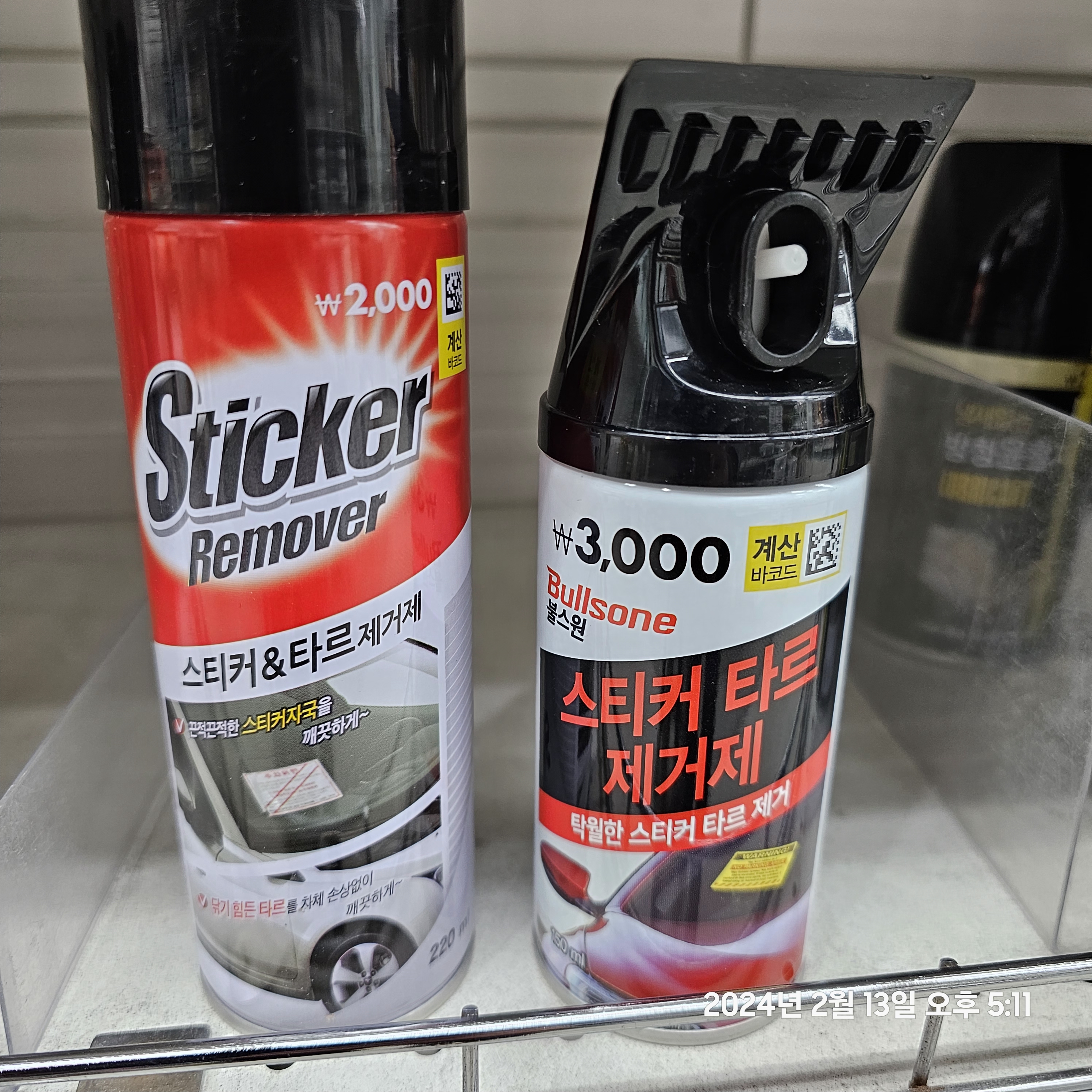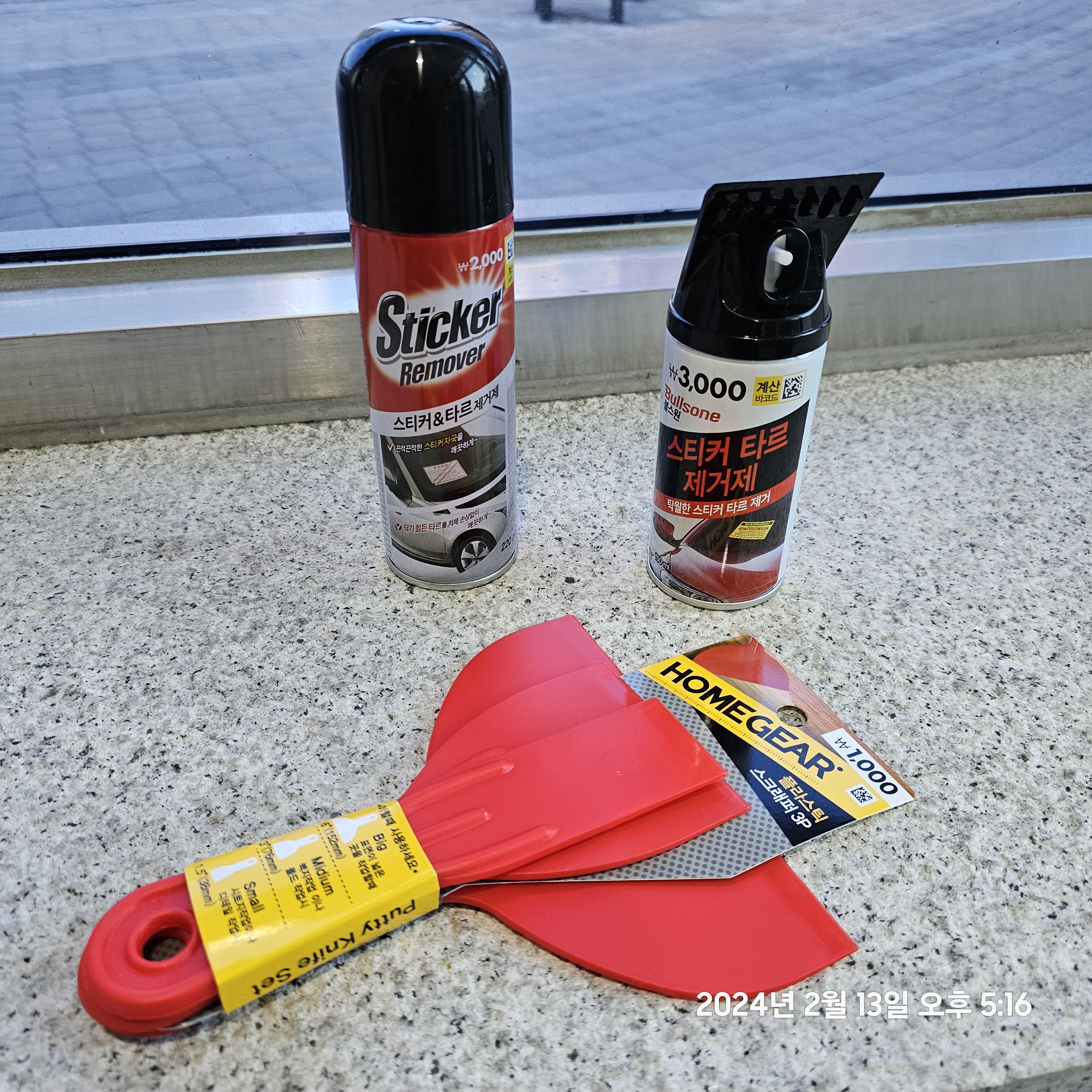 주차위반 스티커 제거제.다이소에서 타르제거제랑 긁는것만 있으면 될듯요.완벽하진 않음.가격&상세사진.