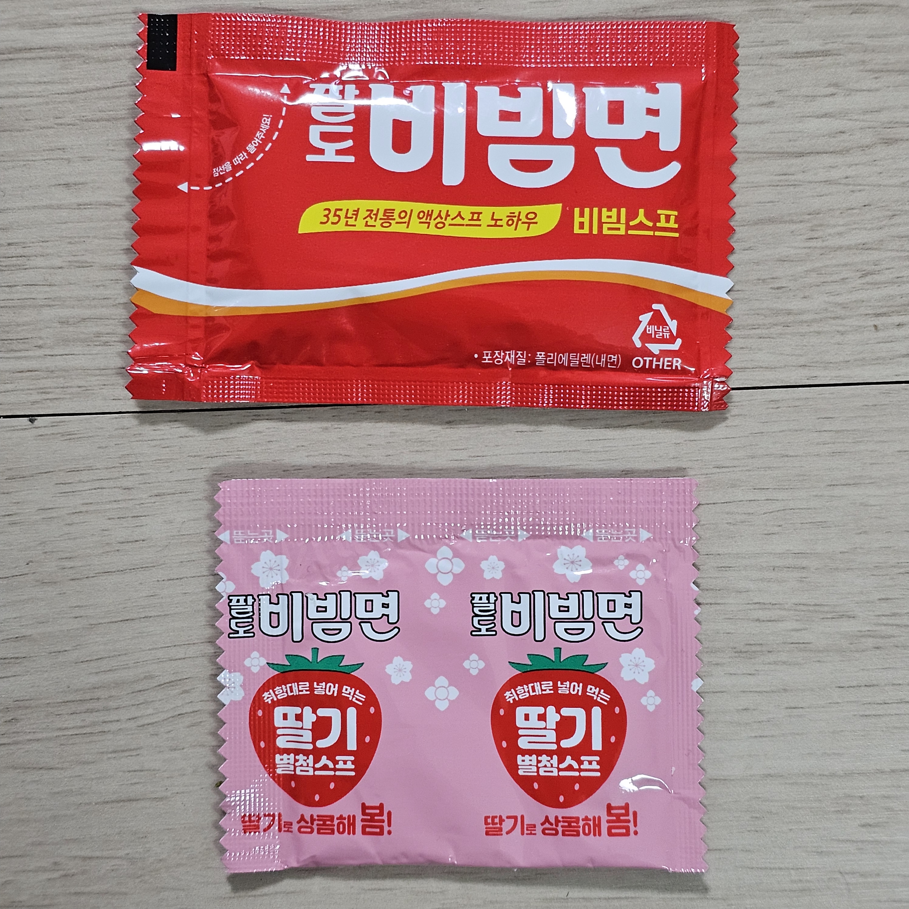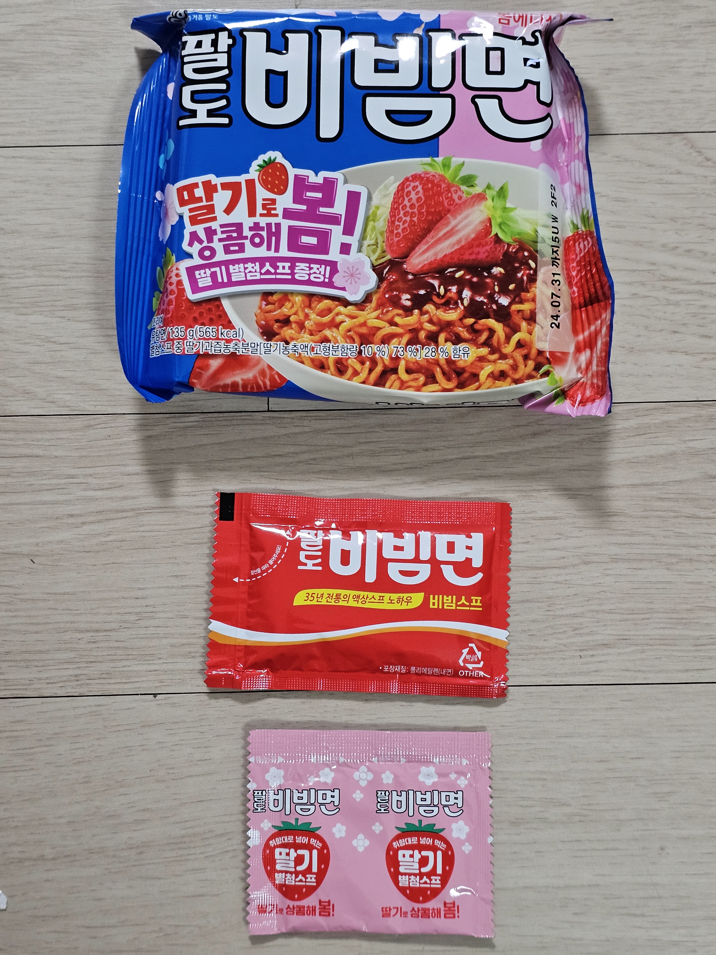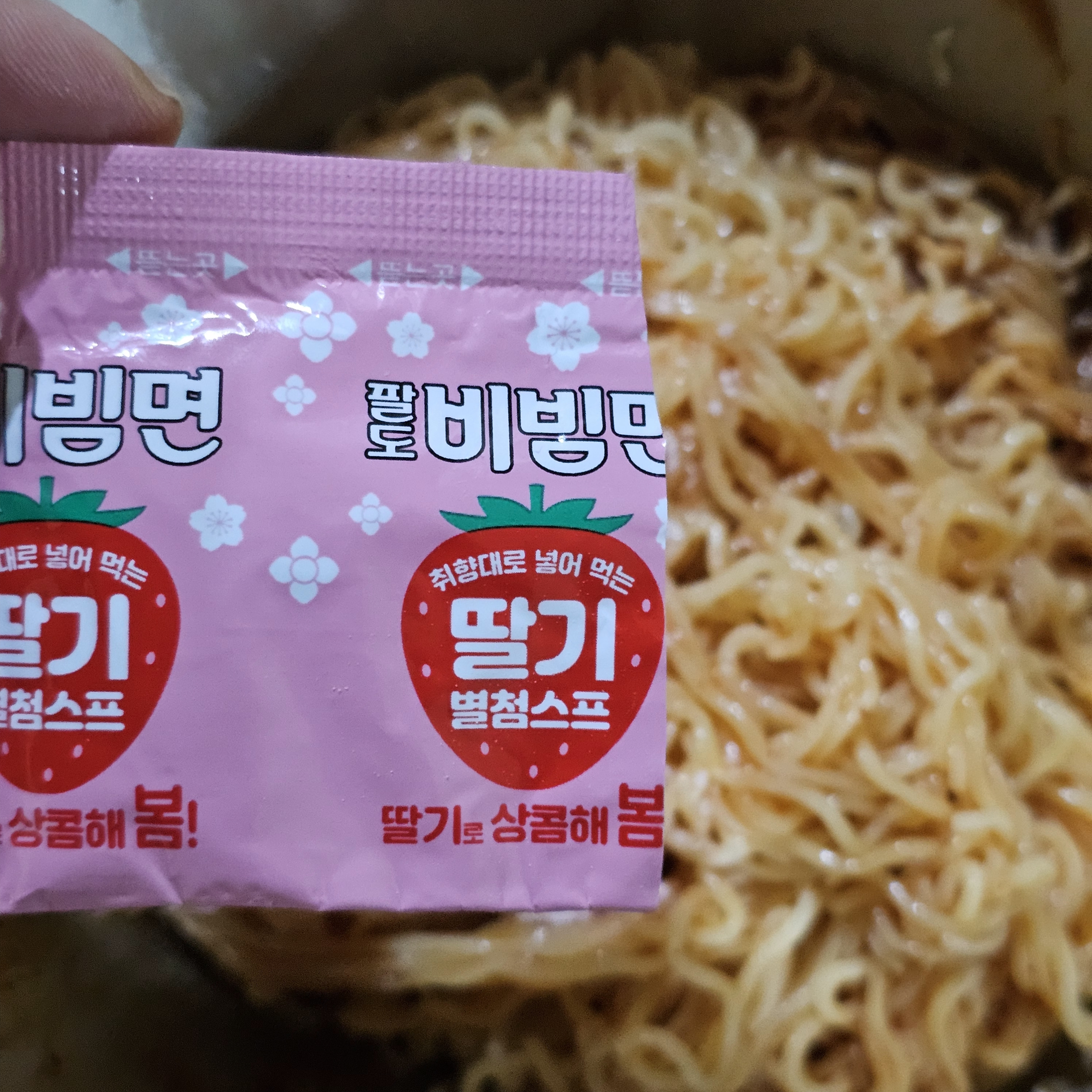 내용물은 비빔스프 외에 딸기맛 별첨스프가 따로 들어감 그러니까 기존 드시던 대로 드셔도 되공