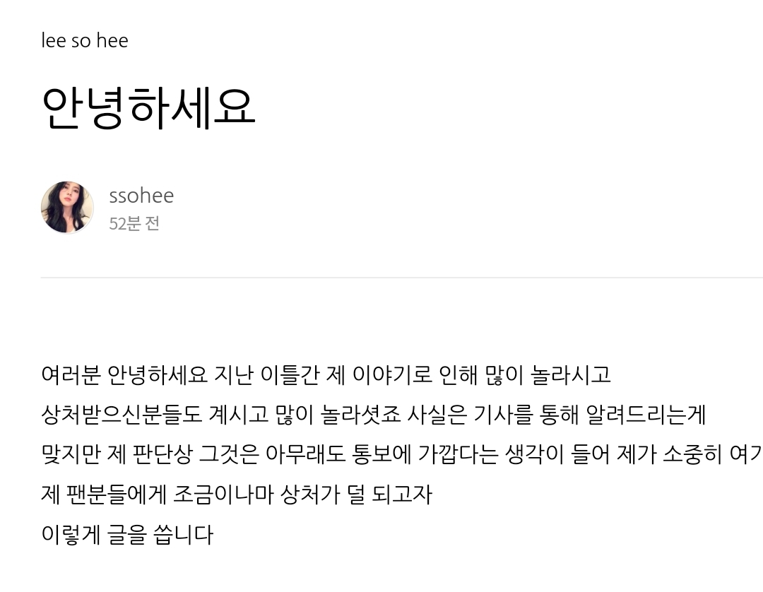 제 팬분들에게 조금이나마 상처가 덜 되고자