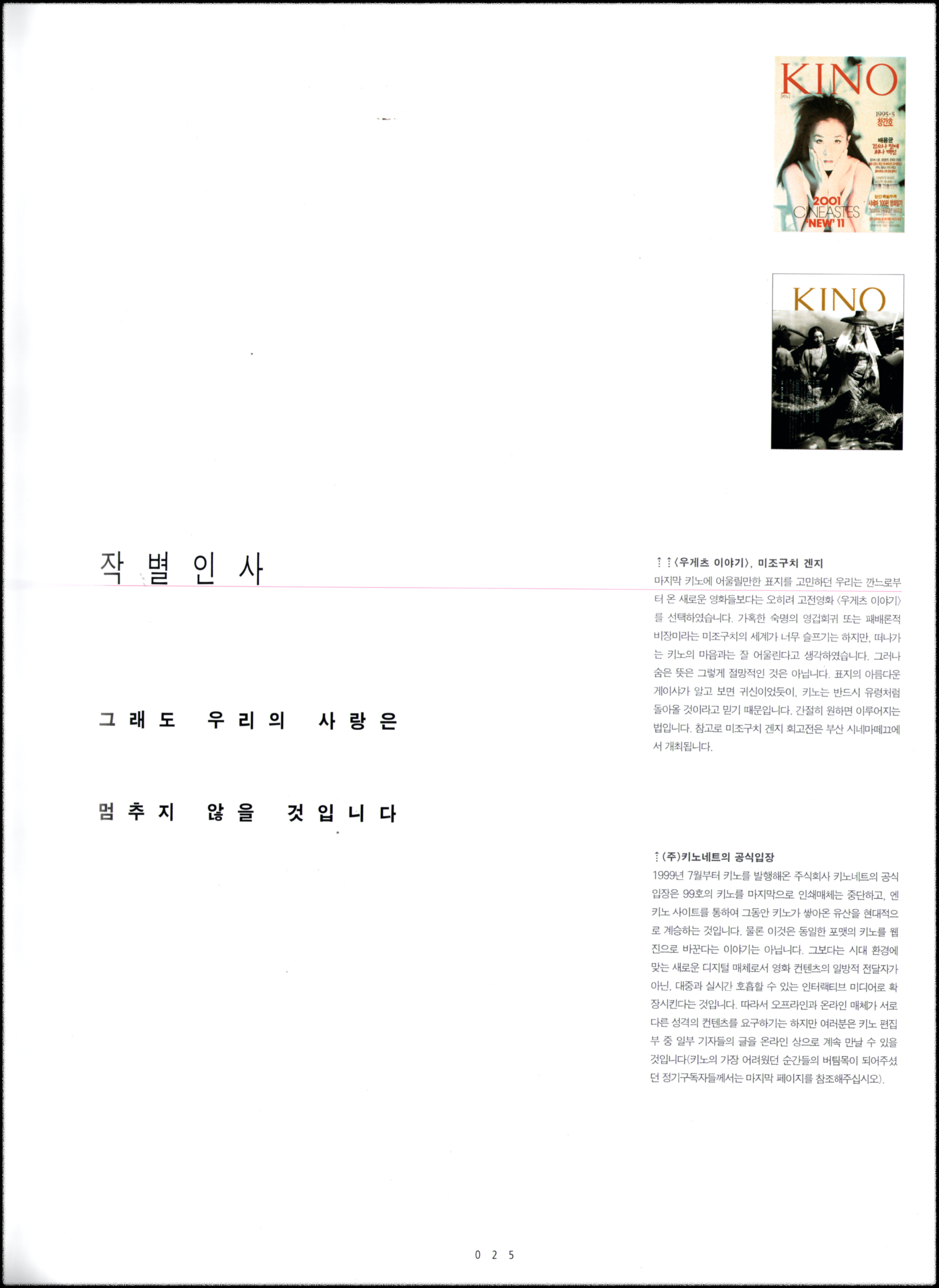 영화잡지 KINO 키노 2003년7월 99호(폐간호) 작별인사