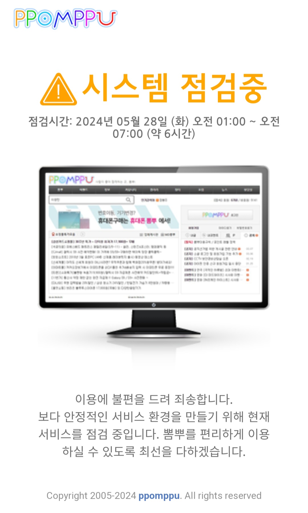 뽐뿌 사이트 시스템 점검중 2024.05.28