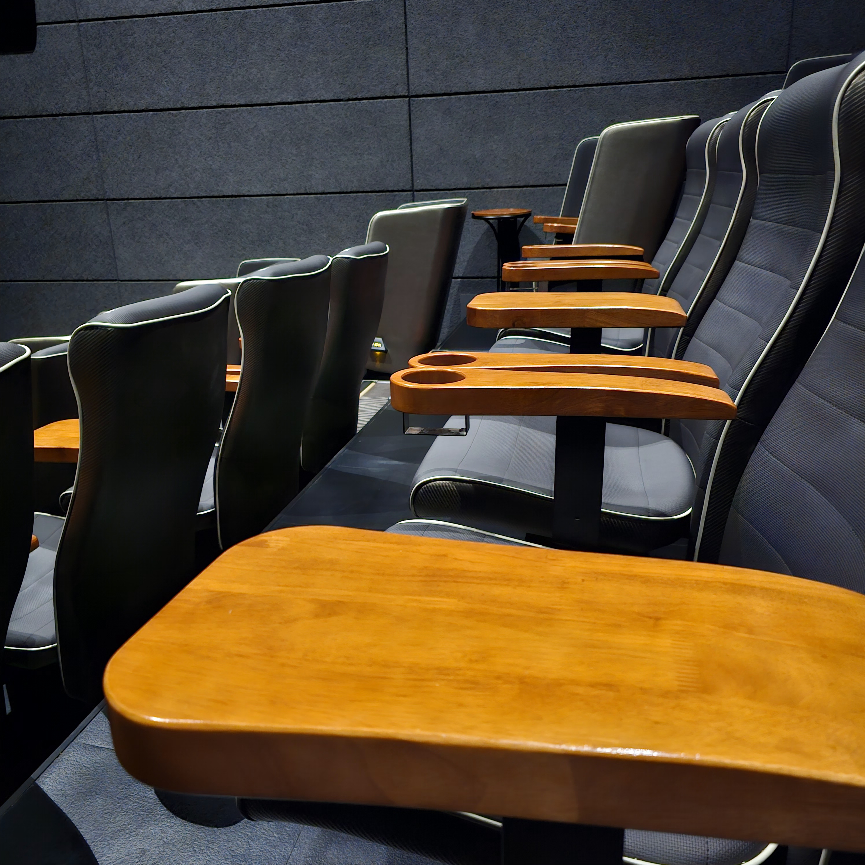 양쪽 끝에 커플석. 중앙으로 좌석이 비스듬히 있어서