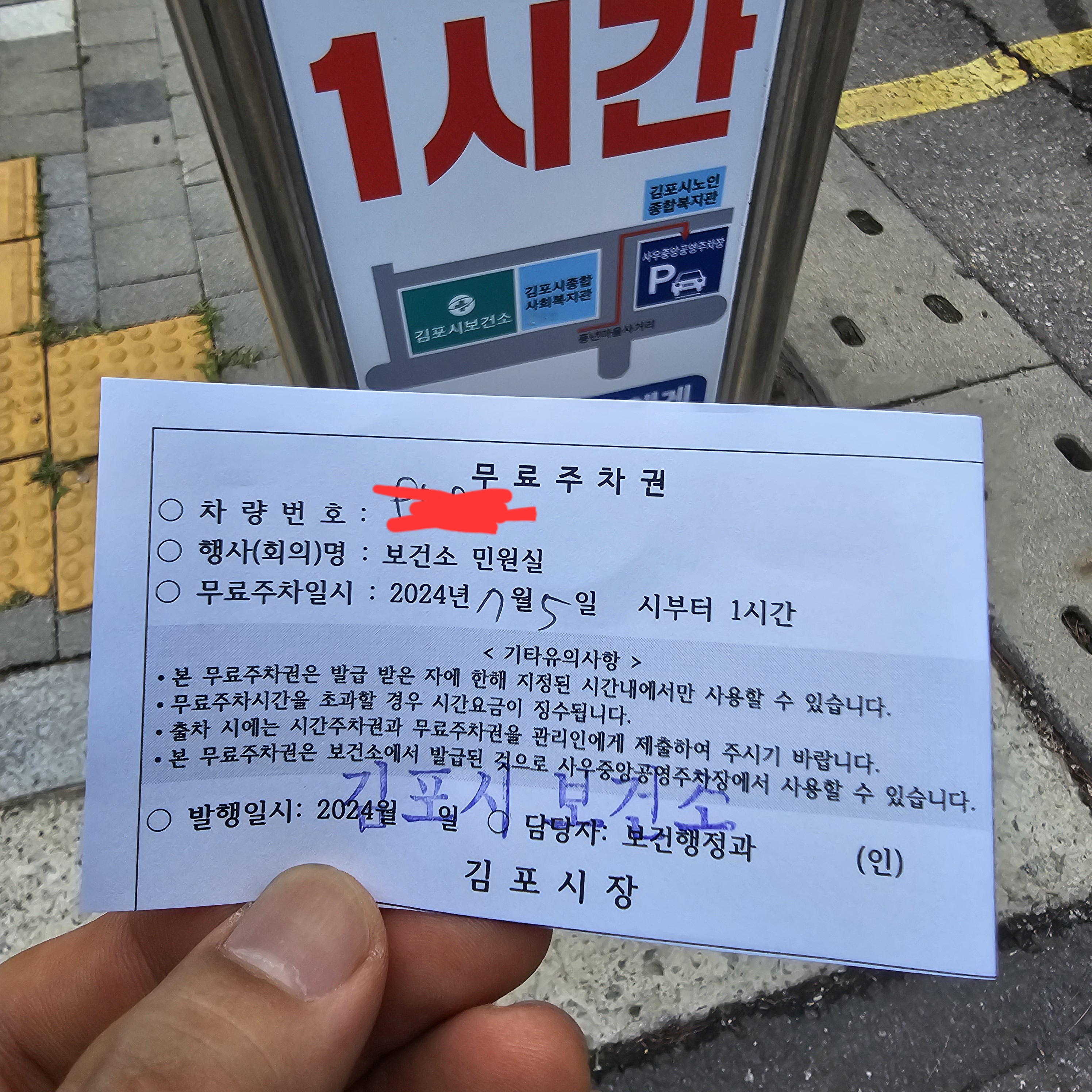 김포시 보건소 주차장 근처에 공영주차장 1시간 무료