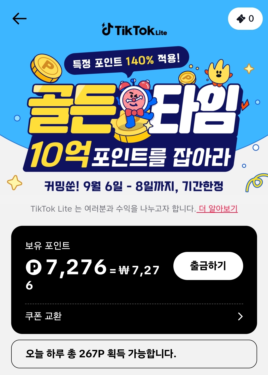 A: 이벤트 참여 이력과 포인트는 핸드폰 기종에 따라 변동되는 것이 아닌 TikTok Lite 계정에 연동됩니다. 새로운 핸드폰으로 다시 이벤트에 참여해도 포인트와 이벤트 참여 이력은 그대로 유지됩니다.
