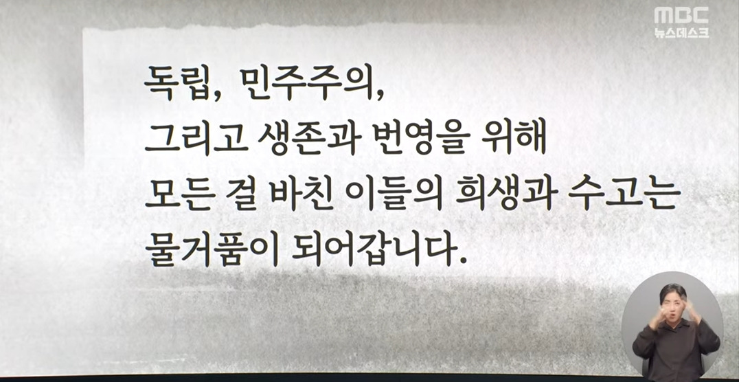 4. 대통령 윤석열 씨의 경우는 그 정도가 지나칩니다. 그는 있는 것도 없다 하고, 없는 것도 있다고 우기는 '거짓의 사람'입니다. 꼭 있어야 할 것은 다 없애고, 쳐서 없애야 할 것은 유독 아끼는 ‘어둠의 사람’입니다. 무엇이 모두에게 좋고 무엇이 모두에게 나쁜지조차 가리지 못하고 그저 주먹만 앞세우는 ‘폭력의 사람’입니다. 이어야 할 것을 싹둑 끊어버리고, 하나로 모아야 할 것을 마구 흩어버리는 '분열의 사람'입니다. 자기가 무엇하는 누구인지도 모르고 국민이 맡긴 권한을 여자에게 넘겨준 사익의 허수아비요 꼭두각시. 그러잖아도 배부른 극소수만 살찌게, 그 외는 모조리 나락에 빠뜨리는 이상한 지도자입니다. 어디서 본 적도 들은 적도 없는 파괴와 폭정, 혼돈의 권력자를 성경은 "끔찍하고 무시무시하고 아주 튼튼한 네 번째 짐승"(다니 7,7)이라고 불렀습니다. 그러는 통에 독립을 위해, 민주주의를 위해, 생존과 번영을 위해 몸과 마음과 정성을 다 바친 선열과 선배들의 희생과 수고는 물거품이 되어가고 있습니다. 아무리 애를 써도 우리의 양심과 이성은 그가 벌이는 일들을 도무지 이해할 수 없습니다.