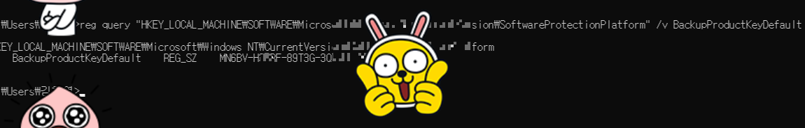 reg query “HKEY_LOCAL_MACHINE\SOFTWARE\Microsoft\Windows NT\CurrentVersion\SoftwareProtectionPlatform” /v BackupProductKeyDefault