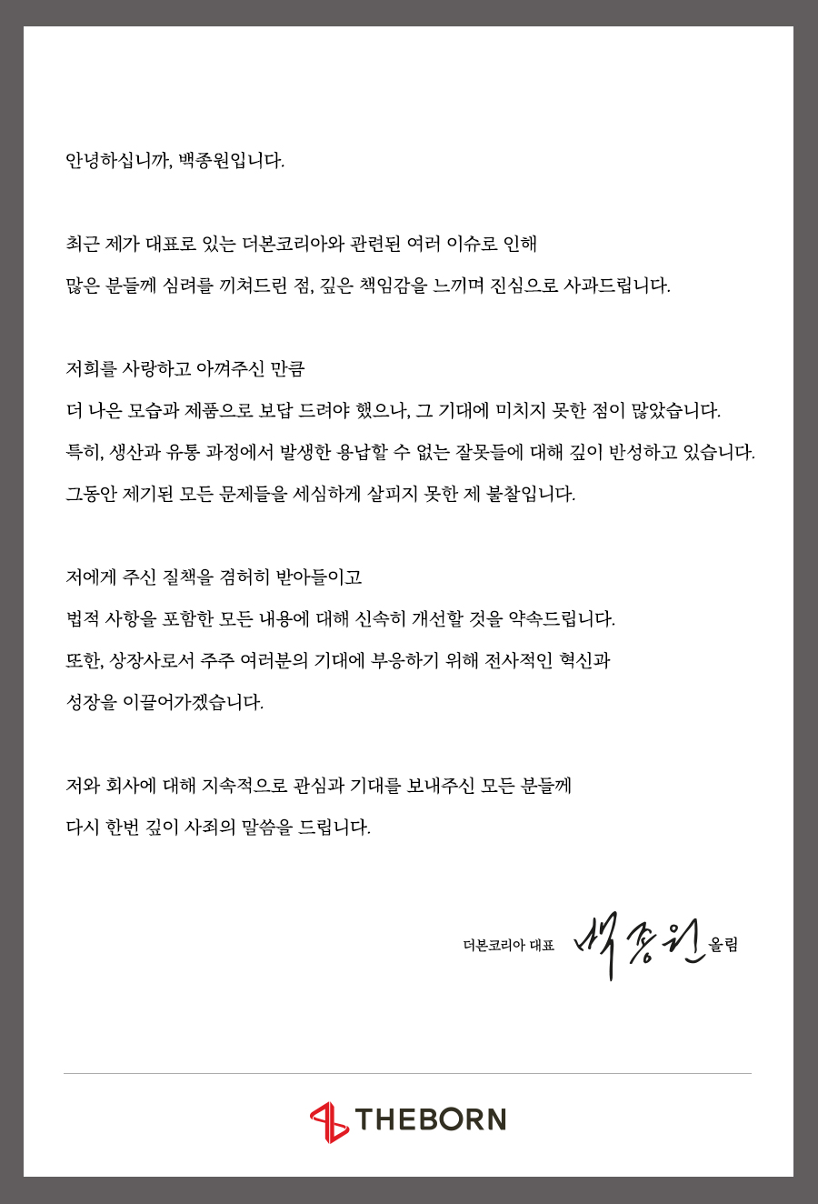 많은 분들께 심려를 끼쳐드린 점, 깊은 책임감을 느끼며 진심으로 사과드립니다.