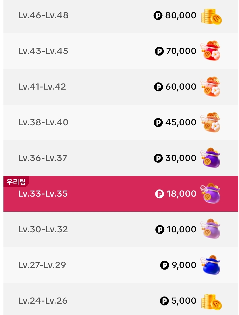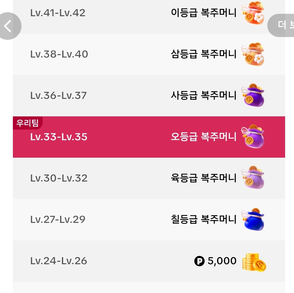 등급별 복주머니 포인트가 가려져 있는데요.