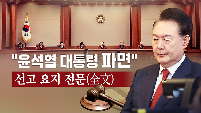 주문 피청구인 대통령 윤석열을 파면한다. 선고 요지 전문 2025.04.04