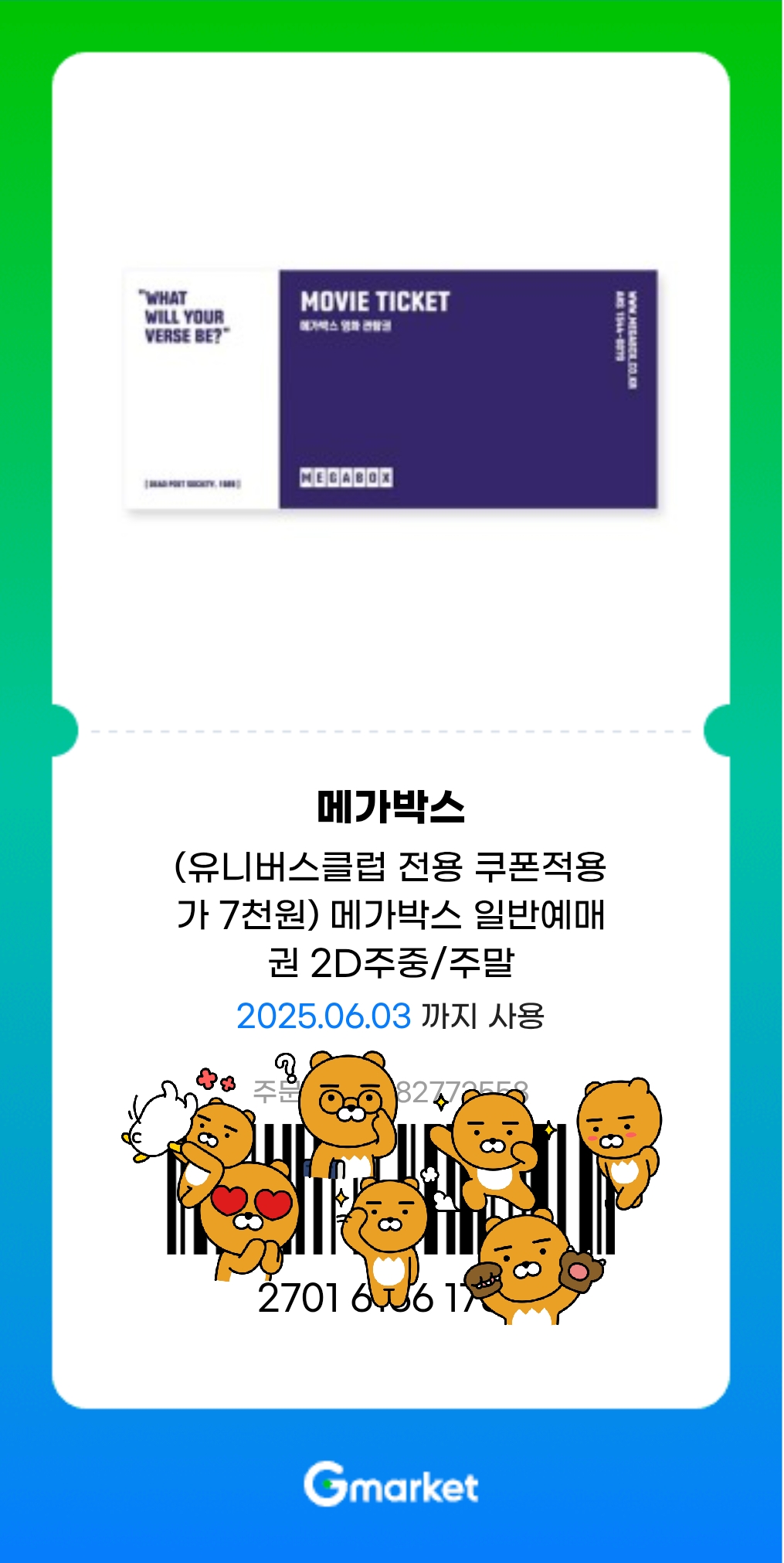 메가박스 지마켓 유니버스클럽 전용 예매권 사용안내