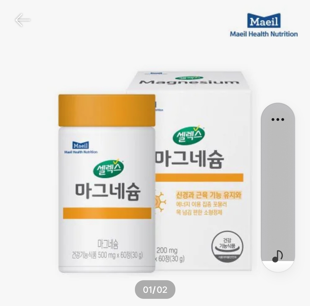 우리 몸에서 중요한 역할을 하는 미네랄인 마그네슘을 보충하기 위한 건강기능식품이다.