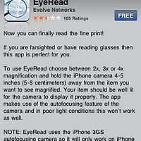 반응형 EyeRead1 아이폰 돋보기 어플 무료 EyeRead 유료 iCanSee 아이폰 돋보기 어플 무료 EyeRead 유료 iCanSee 텔레비전 잘 안 보는데.. 월드컵이라고 테레비좀 보는데.. 돋보기 어플 혹~ 하더라구요 네이버 아사모 까페에서 봤는데..유료 무료가 있더군요. 일단 테레비에서 광고하는 어플은 iCanSee 인데 유료 0.99 달러네요. 무료 어플도 있어요.. 한번 써보세요.제일 중요한것은 항상 제목에 적습니다. 참고로 저는 미국계정에서 받았어요. 감사합니다. 2011까지~ 2010. 6. 16. 더보기 ›› 반응형 이전 1 다음